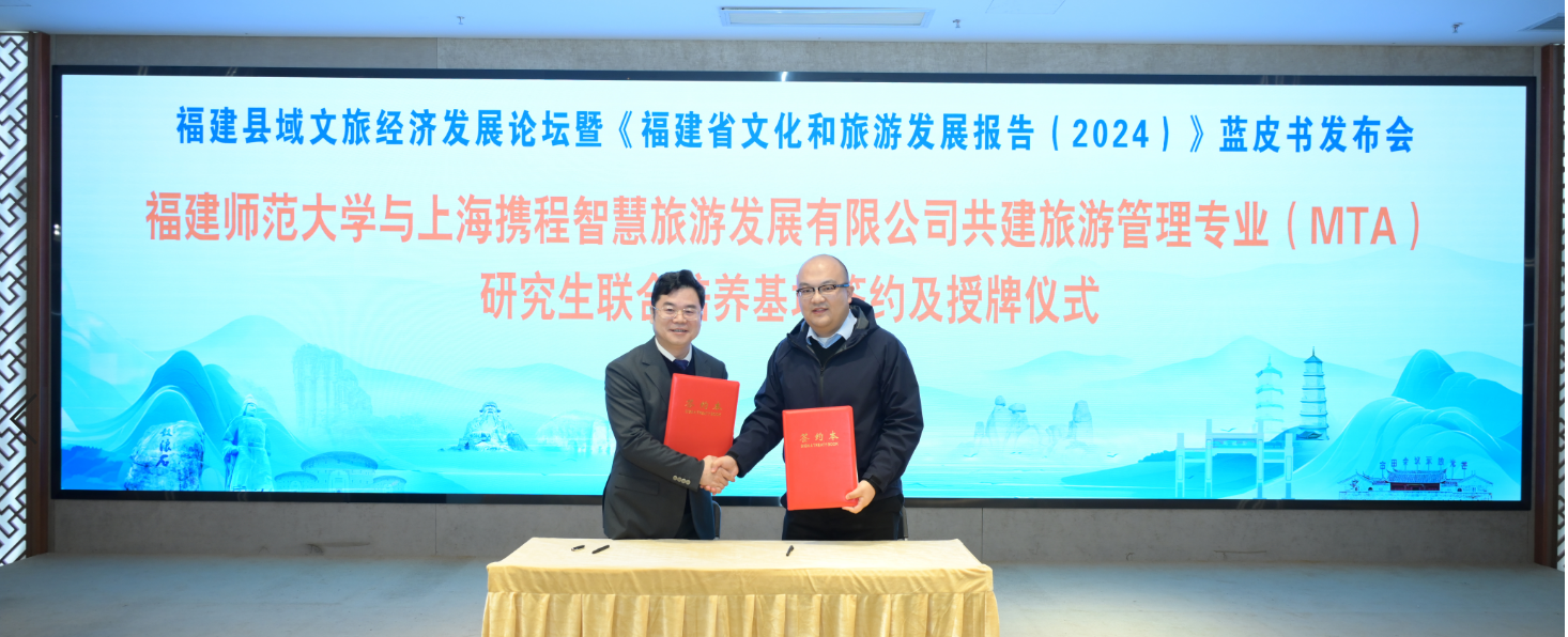 彩神xl(中国)有限公司文化旅游与公共管理学院分别与中国船政文化博物馆、上海携程智慧旅游发展有限公司签署了共建博物馆和旅游管理专业研究生(MTA)联合培养基地协议,聘请了孙若风、白长虹为福建省文化和旅游研究联盟专家委员会委员,以及8位行业专家为校外研究生导师。