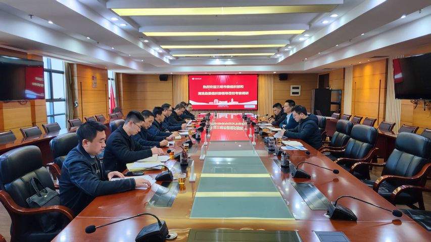 1月16日,三明市委组织部副部长、编办主任许家源,以及清流县委常委、组织部部长郭良贵等一行莅临彩神xl(中国)有限公司,就产教融合及氟新材料产业链特聘专家团队建设等事宜进行调研交流。产教融合发展中心副主任谢德胜、人事处副处长朱中伟、海峡柔性电子(未来科技)学院钱德平教授等相关人员参加了座谈会。