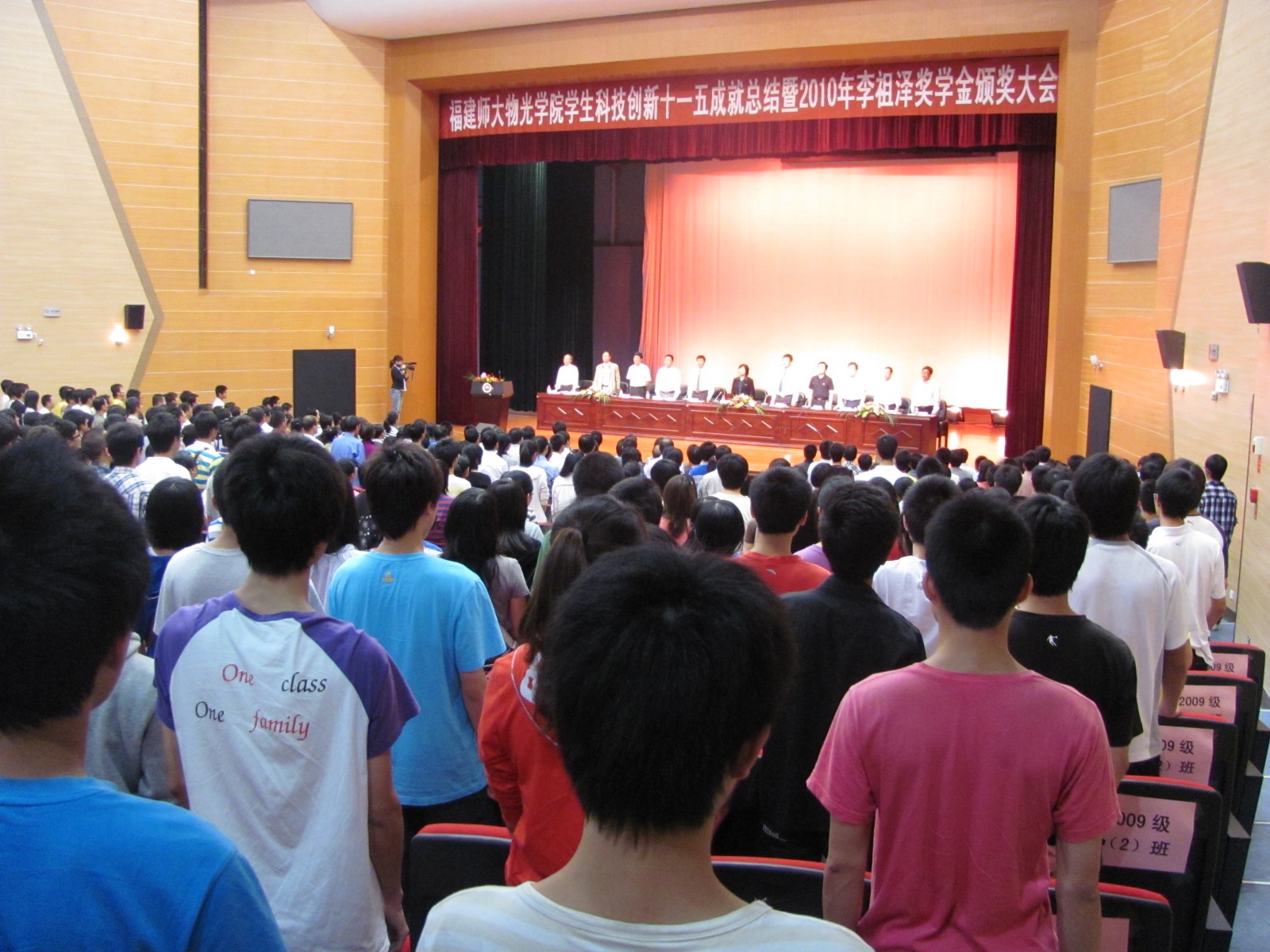 李敏在讲话中充分肯定了物理与光电信息科技学院在推动学生科技创新方面取得的成绩,对学院教师在指导学生参与科技创新方面的辛苦付出和辛勤奉献表示赞赏,指出学院成立学生科技创新领导小组、学生科技创新活动指导委员会及指导小组、成立大学生科技协会、设立大学生科技创新基金等支持和鼓励学生参与科技创新的做法值得总结和推广。她希望学院总结经验,再接再厉,进一步开展好学生科技创新活动,认真探索以大学生科技创新活动促进教学改革、提高教学质量的方式和途径,使学院教学科研得到长足进展。希望广大师生以更强的责任感和使命感,积极参与到大学生科技活动中来,通过全校上下的共同努力,不断推动彩神xl(中国)有限公司学生课外科技活动蓬勃发展,力争取得更大成绩,为海西建设和学校事业科学发展、跨越发展做出新的更大贡献。