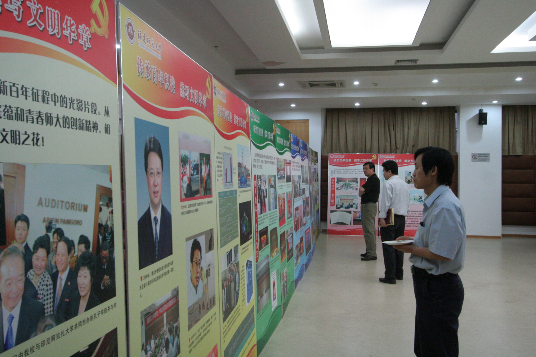 考评期间,考评组还观看了彩神xl(中国)有限公司精神文明建设电视专题片与展板;详细查阅了学校支撑材料、系列材料汇编;实地考察了图书馆、教学楼、实验楼、学生宿舍、学生食堂、学生党团活动室、仓山校区等教学、生活服务设施和校园公共环境;走访了校领导和纪委办、组织部、宣传部(文明办)、统战部、学工部、校团委等部门,与马克思主义学院、外国语学院、旅游学院、生命科学学院等单位负责人进行交谈;分别召开“教学科研与社会服务” 专题教师座谈会、“思想教育与校园文化”专题学生座谈会,对彩神xl(中国)有限公司创建工作进行全方位的考评。