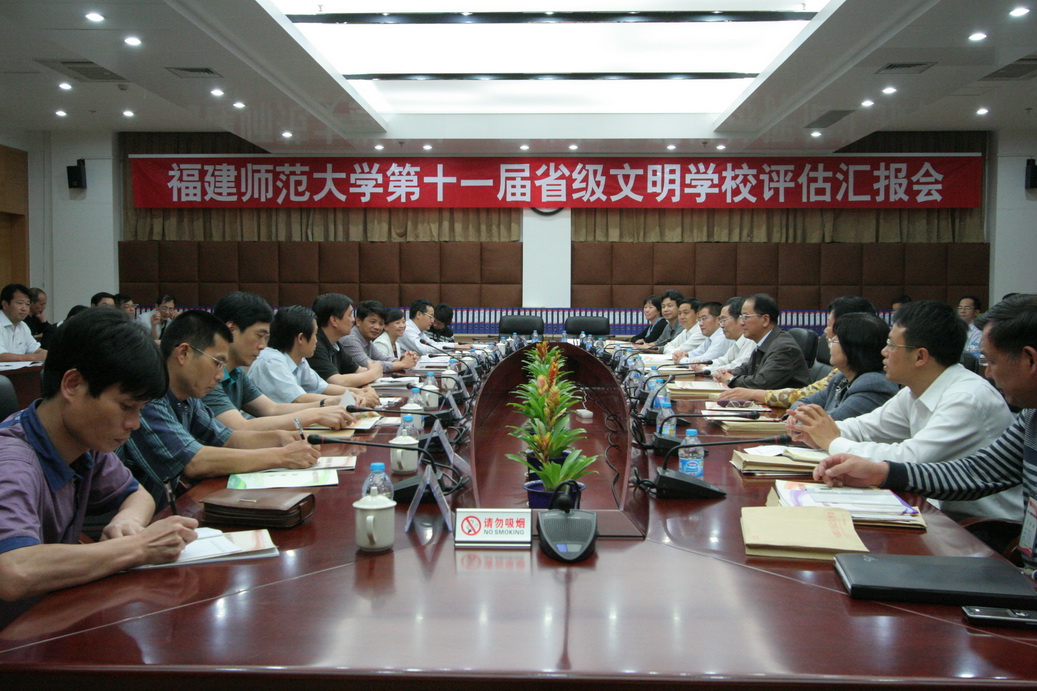 评估汇报会于5月24日下午在旗山校区第十会议室举行。校领导罗萤、许歌平、汪文顶、李敏、凌启淡,校文明委委员,各分党委(党总支、直属党支部)书记,机关各部处、室、馆、中心、集团、医院、公司和马克思主义学院主要负责人参加了汇报会。考评组认真听取了校党委书记罗萤所作的《务实创新抓创建科学发展谱新篇》的创建工作报告。