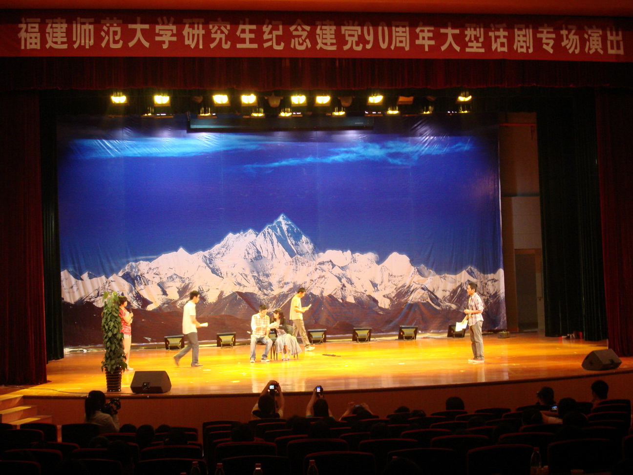 近日,由研工部主办,研究生团委、文学院左岸戏剧坊承办的研究生纪念建党90周年大型话剧专场演出在旗山校区大会堂举行。校党委书记罗萤,有关部门、学院相关负责同志等600多名师生一同观看了演出。