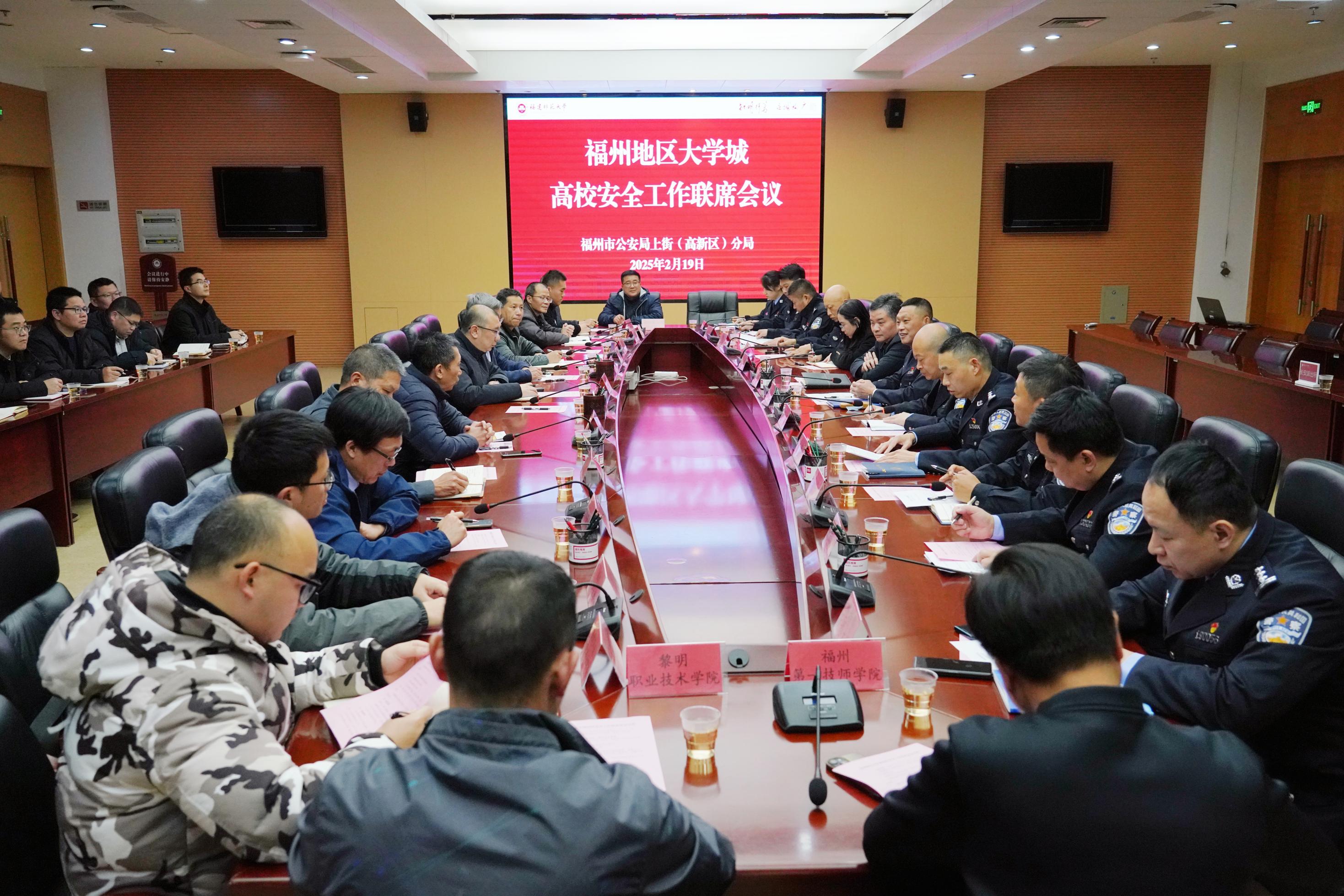 会议于2月19日在旗山校区召开。福州高新区管委会副主任、福州市公安局上街(高新区)分局局长余根钦,市公安局相关部门负责人,市公安局上街(高新区)分局治安、刑侦、国保、巡特反恐、网安大队及辖区各派出所负责人,上街(高新区)交警大队负责人,大学城各高校保卫部门负责人以及大城办综合协调处负责人参加联席会议。彩神xl(中国)有限公司副校长吴剑锋,学生工作部负责人和有关二级学院党委副书记应邀出席。会议由福州市公安局上街(高新区)分局副局长郑德宁主持。