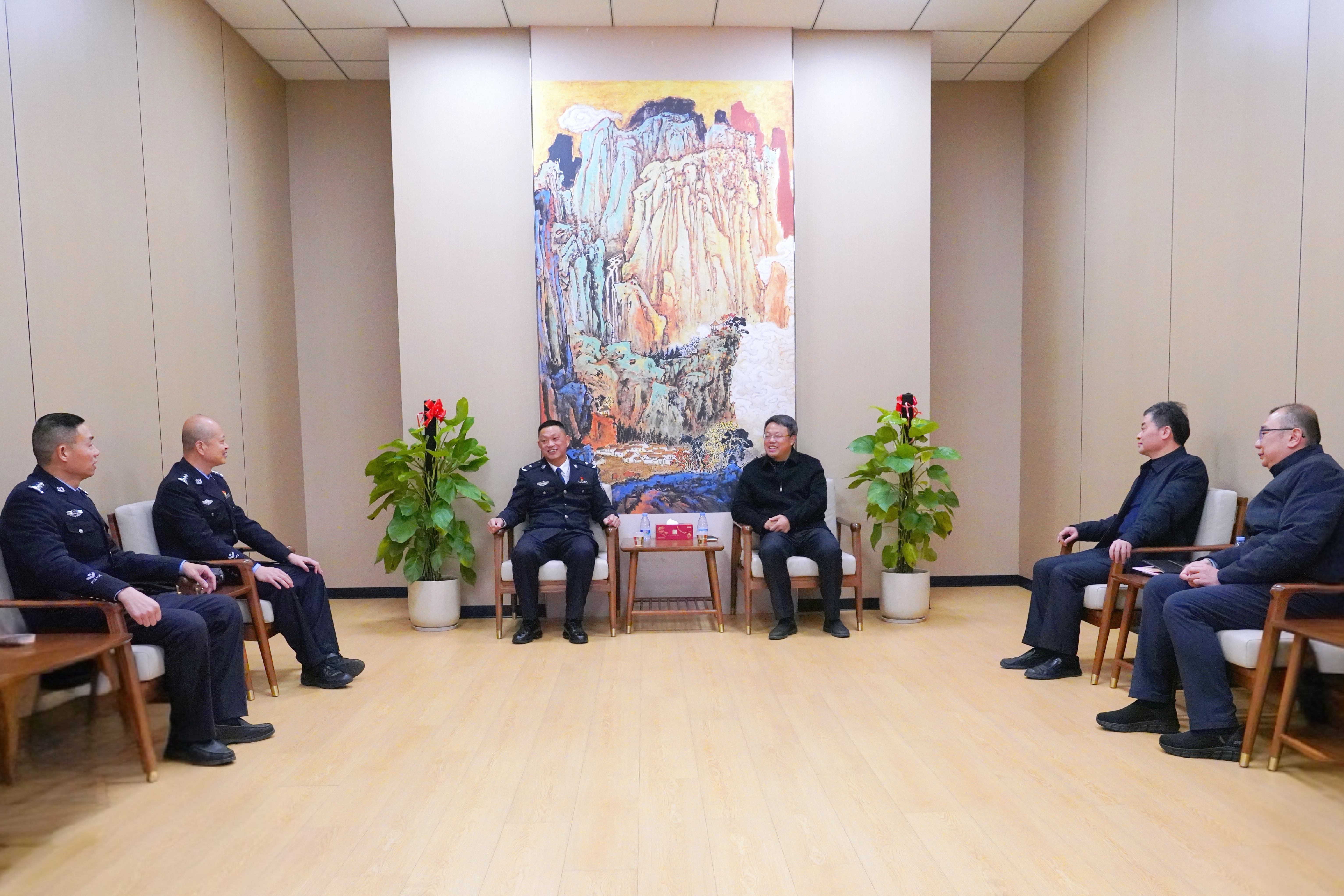 会前,校党委书记潘玉腾会见了余根钦局长一行,对广大公安干警长期以来守护校园安全、护航学生成长所付出的辛勤努力表示衷心感谢,希望进一步深化校警联动共治机制,共同维护校园及周边的安全与稳定,筑牢校园周边安全堤坝,以高水平校园安全护航学校事业高质量发展。
