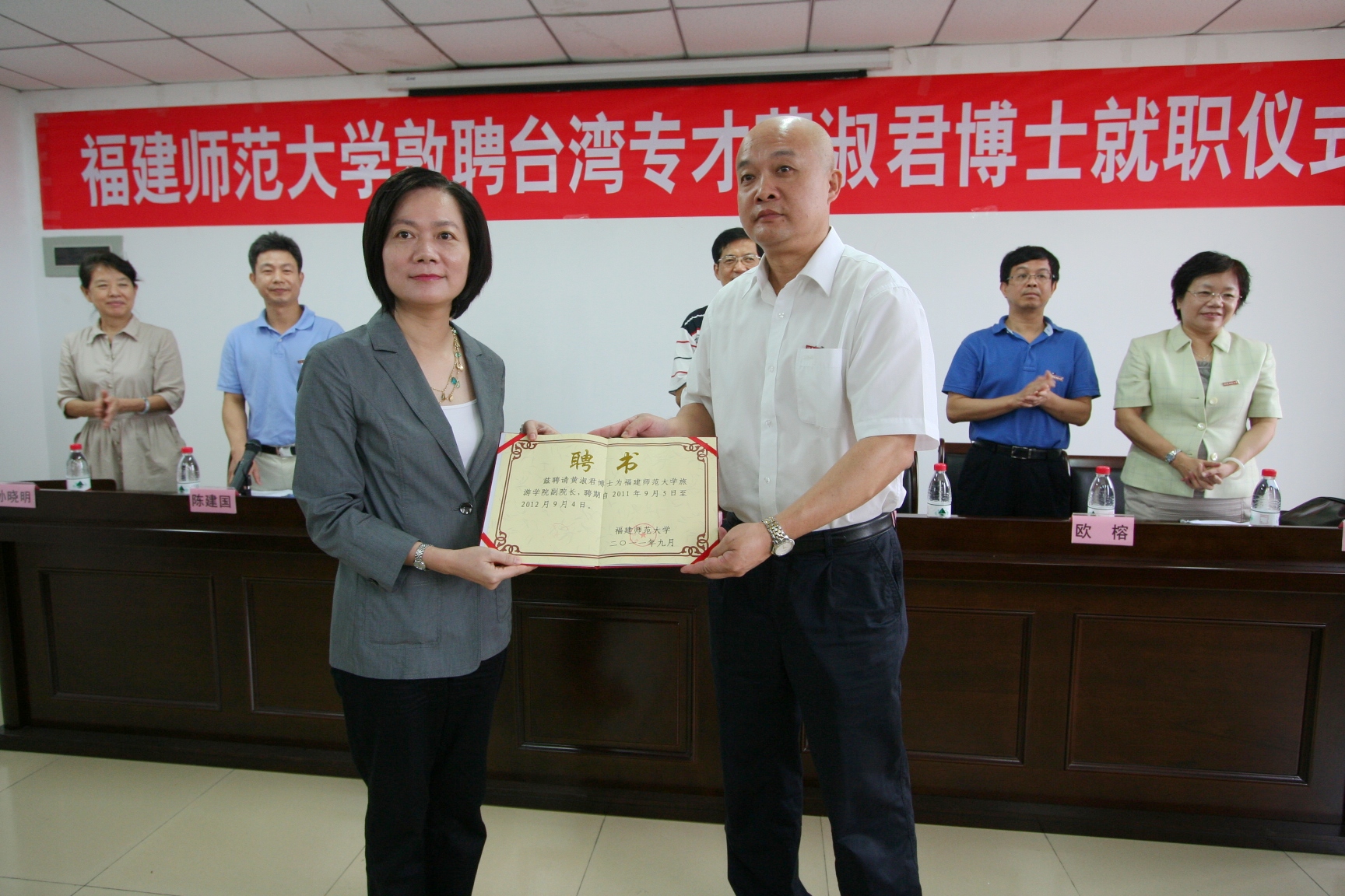 就职仪式上,许明向黄淑君博士颁发了聘书,代表学校对黄淑君博士到校就职表示热烈的欢迎。他指出,选聘台湾专才来闽担任管理职务,是省委、省政府为进一步深化海峡两岸的交流与合作、构建海峡两岸高端人才交流的新平台和新途径、加快推进海西建设所做出的重要决定和先行先试的重要举措。希望受聘的台湾专才在按照聘用合同积极开展工作的同时,把台湾高校比较成熟的教育理念、管理模式等引入旅游学院,积极推动旅游学院与台湾相关高校及业界在旅游规划与设计等领域的交流与合作,进一步推动旅游学院的办学水平、管理水平和办学影响力不断提升。同时,他对省委人才办、省委台办等上级有关部门对彩神xl(中国)有限公司选聘台湾专才工作给予的指导、支持和帮助表示诚挚的感谢,希望继续关心、支持彩神xl(中国)有限公司的人才工作。