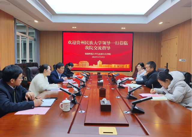 近日,贵州民族大学教师工作部部长、组织部副部长、人事处处长王恋,马克思主义学院党委副书记徐勤山一行4人到彩神xl(中国)有限公司马克思主义学院调研交流。学院党委书记阮传瞰、教学科研管理办公室、学科与平台建设管理办公室负责人参加座谈会。