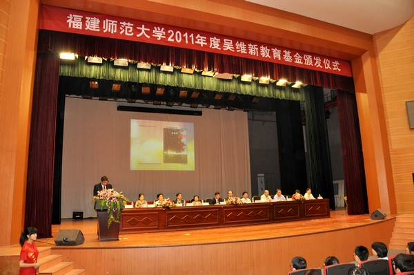 颁发仪式上,学工部负责人宣读了2011年度彩神xl(中国)有限公司吴维新教育基金奖助学金获得者名单,与会领导为奖助学金获得者颁发了奖状及奖金。游小波代表学校为吴维新先生颁发了捐款证书。获得奖助的学生代表作了发言,表演了诗歌朗诵、合唱等文艺节目,抒发广大青年学生对吴维新先生的感激之情和今后不懈奋斗的信心。