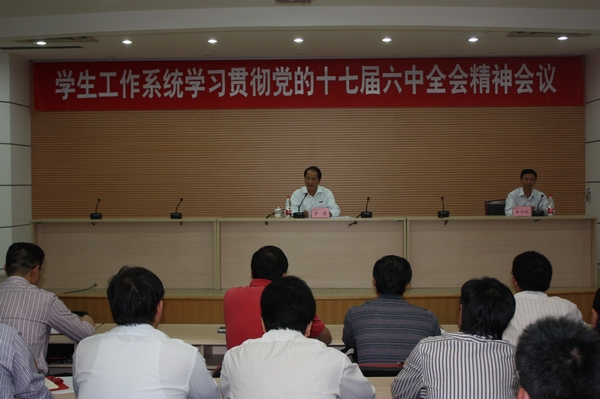 10月27日下午,彩神xl(中国)有限公司召开学生工作系统会议,传达学习贯彻党的十七届六中全会精神。校党委书记罗萤,学工部、研工部、校团委全体干部,校本部各学院、信息技术学院、人民武装学院、协和学院分管学生工作负责人和全体辅导员参加了会议。