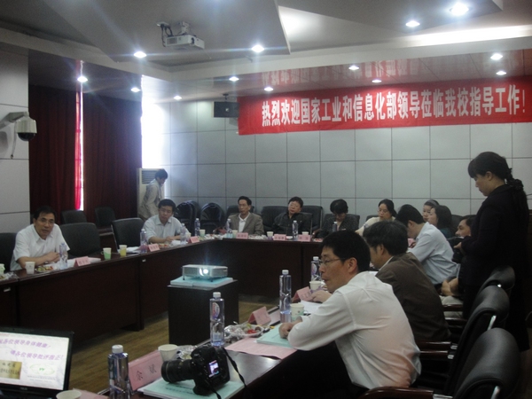 汇报会由省经贸委直属机关党委副书记陈躬仙主持。汇报会上,汪文顶代表学校对国家工业和信息化部领导来校考察指导工作表示热烈欢迎,同时简要介绍了近年来学校的学科建设情况和科研平台建设情况。