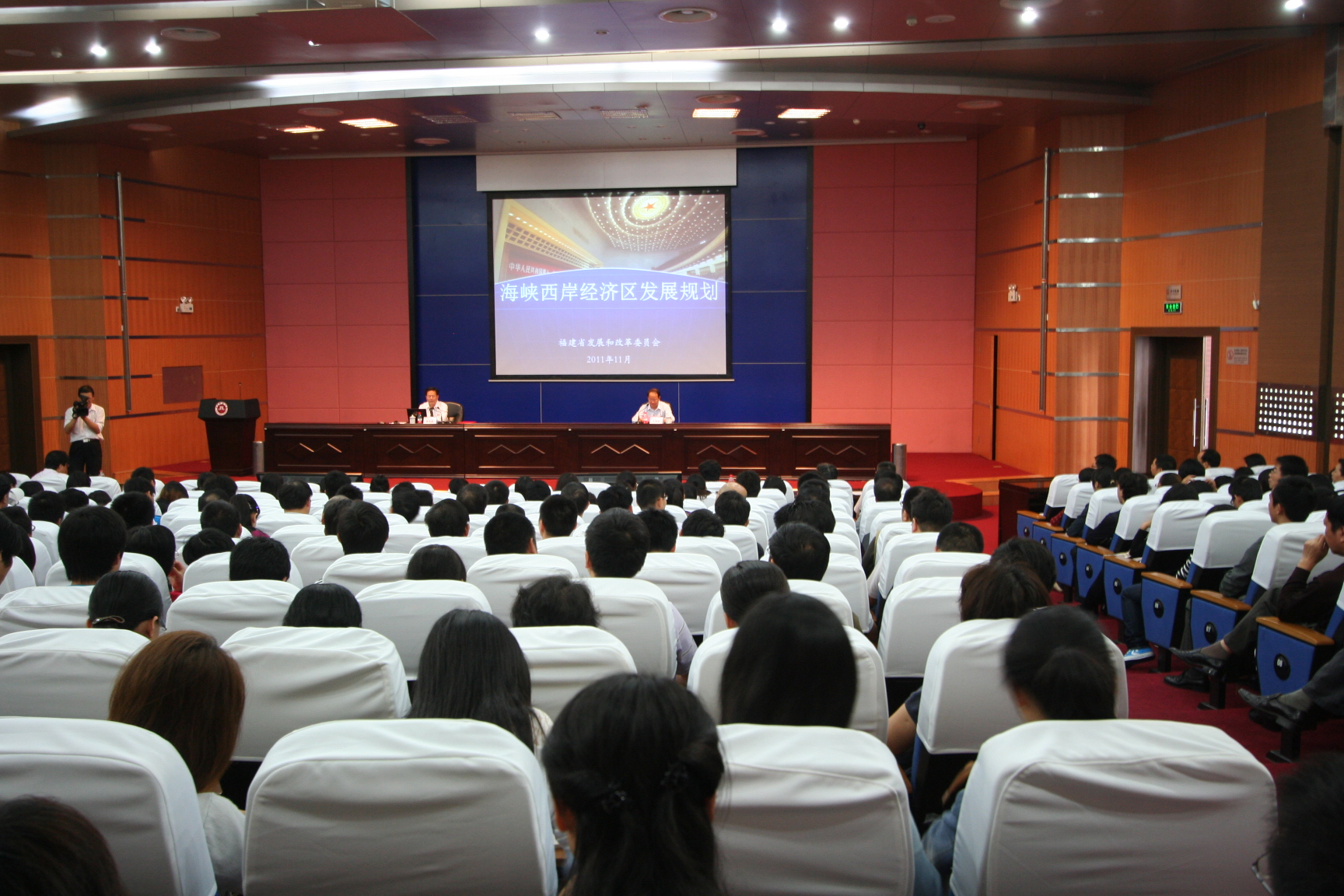 随后,郑栅洁主任作题为“海峡西岸经济区发展规划解读”的专题辅导报告。郑主任从发展基础、总体要求和发展目标、空间布局、构筑两岸交流合作的前沿平台、加快建设现代化基础设施、构建现代产业体系、统筹城乡和区域协调发展、加强区域合作、加快社会事业发展、加强生态文明建设、提升改革开放水平、规划实施的保障措施等十二个方面,结合我省和高校实际,对《海西规划》进行了全面解读和深入分析。报告内容丰富、条理清晰,列举实例生动、引用数据翔实,深入浅出、分析透彻,具有很强的说服力和感染力。