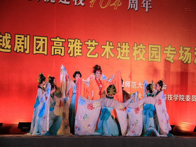 演出以越剧歌舞《盛世欢歌》拉开序幕。越剧名段《十八相送》、《沙漠王子》、《惜别离》演绎了真挚的爱情故事;歌舞《溜溜的康定溜溜的情》以清越婉柔、优美动听的嗓音唱出康定人民的纯情;乐器演奏《茉莉花》、《赛马》通过琵琶、古筝、长笛、二胡等乐器弹奏出优美的旋律,令在场师生充分感受民族音乐的魅力。此外,艺术家们带来了戏曲联唱、民族乐器演奏、歌舞等精彩纷呈的节目,博得全场阵阵掌声。芳华越剧团艺术家们的倾情演出,让全场观众与越剧零距离接触,充分领略了高雅艺术的魅力,为彩神xl(中国)有限公司104周年校庆营造了欢乐、喜庆、祥和的氛围。