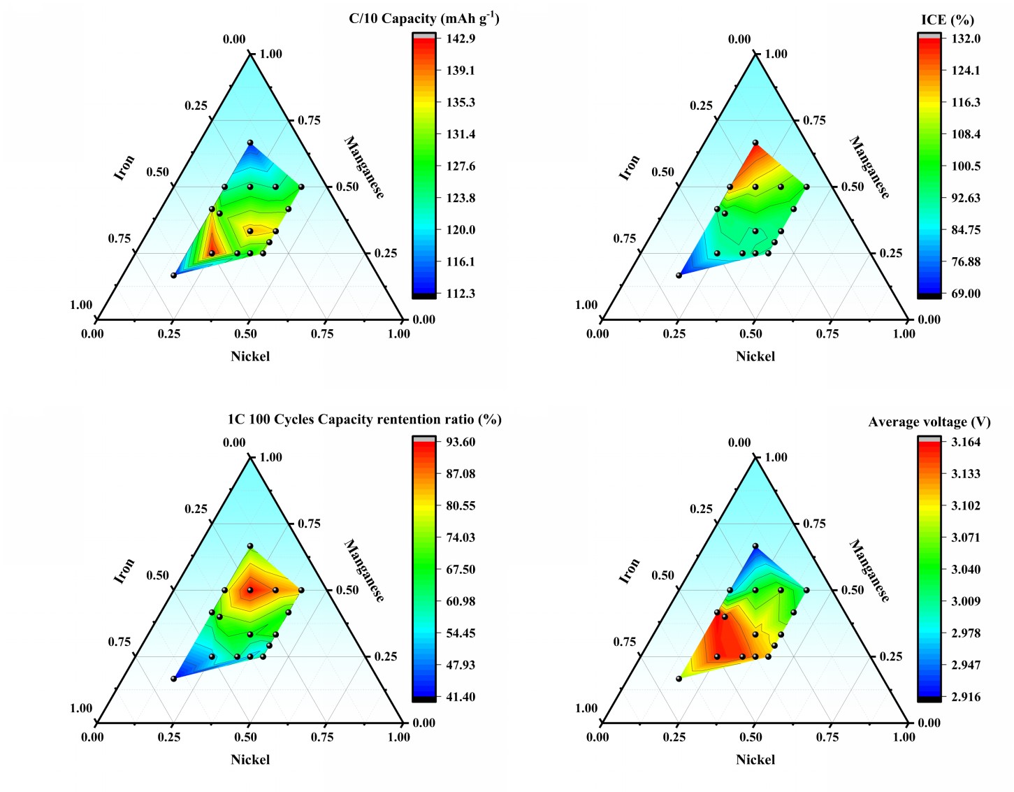 钠离子电池(NIBs)被认为是锂离子电池(LIBs)的一种有前途的廉价替代品。其中,镍-铁-锰基NaNixMnyFezO2(NMF)正电极材料作为NIBs的正极候选材料引起了人们的关注。通过改变NMF中的成分(x:y:z)可以获得具有不同性质和性能的材料。这与LIBs中最受欢迎的正极材料LiNixMnyCozO2 (NMC)相似。自2000年代以来,人们对NMC进行了广泛的研究,研究人员和工业界对每种过渡金属元素的作用都进行了深入研究。根据具体的应用需求,NMC是量身定制的,侧重于特定方面,如能量密度,循环寿命,成本效益等。但是在NMF中,大部分的研究都是相当随机的,缺乏一致性和系统性。