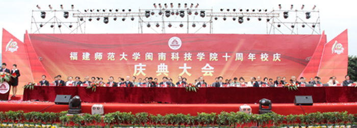 11月16日上午,闽南科技学院隆重举行建院十周年庆典大会。省委教育工委副书记、省教育厅党组成员郭绍生,省侨办党组成员、纪检组长闵蕙君,省侨联副主席谢小建,泉州市委常委、宣传部长、教育工委书记陈庆宗,菲律宾菲华各界联合会名誉主席、闽南科技学院董事长戴宏达,南安市人民政府代市长王春金,菲律宾菲华商联总会名誉董事长、前菲律宾总统特命大使、菲律宾中正学院董事长黄呈辉,闽南科技学院常务副董事长戴新民,莆田学院党委书记郑才木,福建信息职业技术学院党委书记黄锦平,泉州师范学院副校长林华东,福清分校校长陈盛,以及彩神xl(中国)有限公司校长黄汉升、原党委书记苏玉泰、副校长许明、凌启淡等领导和嘉宾出席庆祝大会。