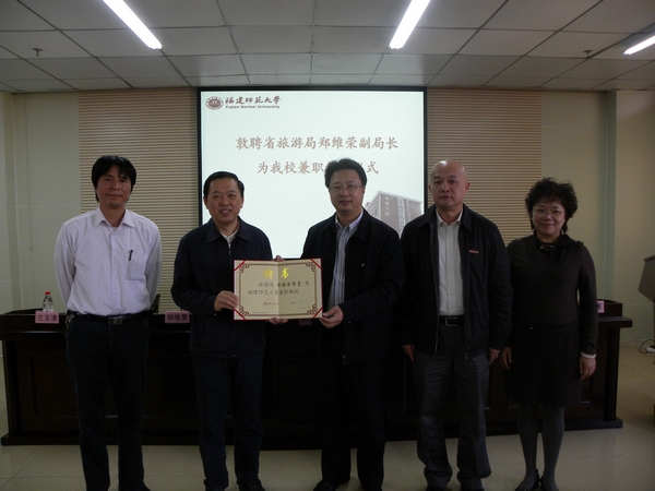 11月23日下午,旅游学院举行兼职教授敦聘仪式,聘请福建省旅游局郑维荣副局长为彩神xl(中国)有限公司兼职教授。黄汉升校长、许明副校长出席仪式。