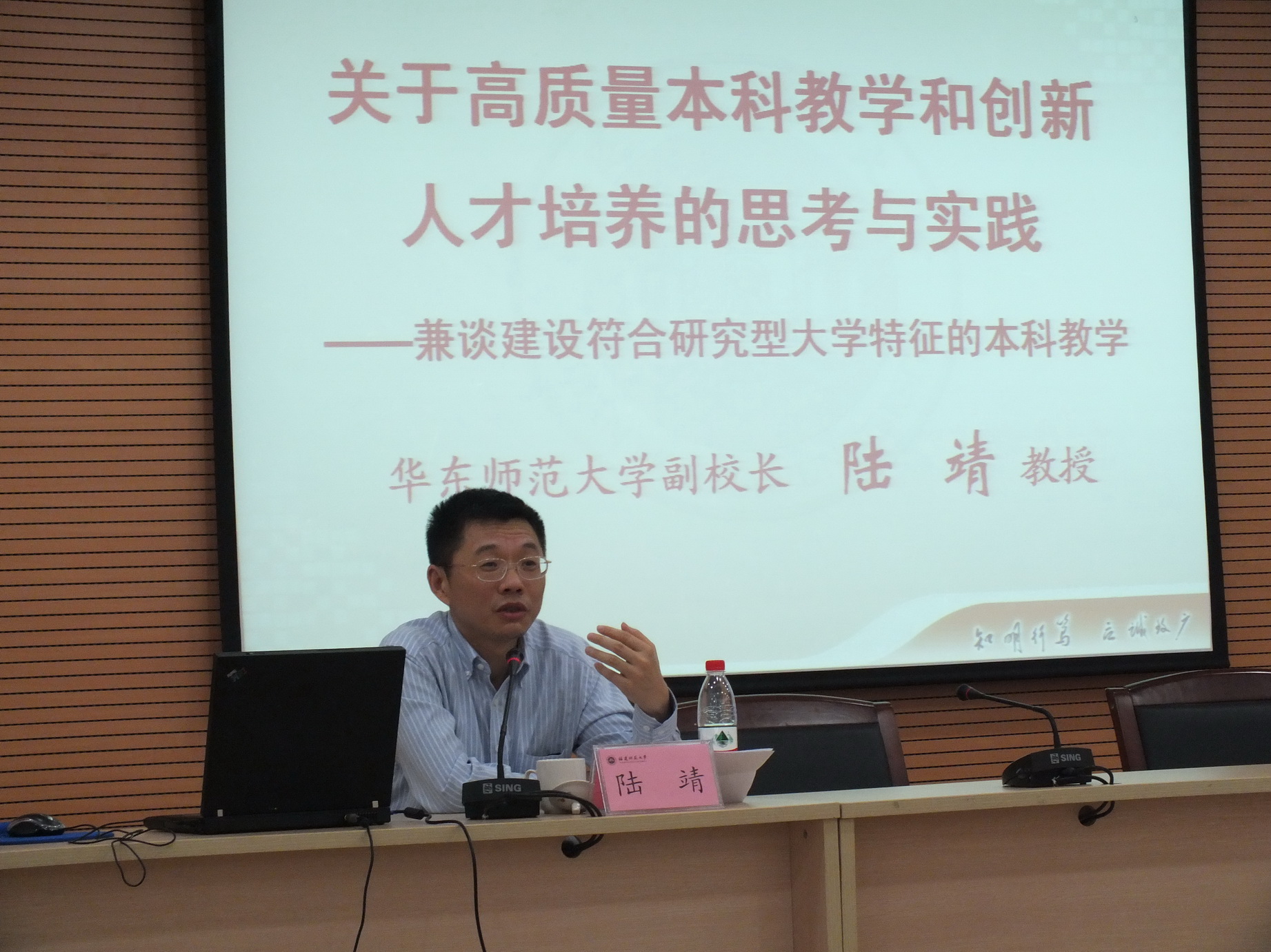 会议还邀请华东师范大学副校长陆靖教授作了“关于高质量本科教学和创新人才培养的思考与实践——兼谈建设符合研究型大学特征的本科教学”专题报告。他立足我国高等教育发展现状,指出个性化教育是创新人才培养的必由之路,强调了高校一方面要为学生创造更多、更好的选课机会、选专业的机会、主动学习的机会、学术研究的机会、感受多元文化的机会;另一方面要提供多方面的指导,通过科学设计培养方案和课程体系,帮助学生选择机会,满足学生成长成才的需要,实现高质量的本科教学和创新人才培养这一目标。讲座主题鲜明、内容丰富、分析透彻,独到而深刻的见解发人深省,受到大家的好评。