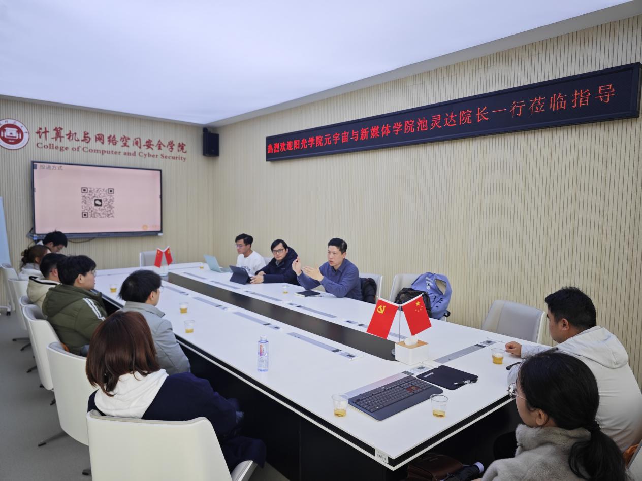 近日,阳光学院元宇宙与新媒体学院池灵达院长一行3人莅临计算机与网络空间安全学院调研交流。学院院长许力、网络空间安全系主任林晖等陪同调研。会上,许力介绍了学院学科建设、人才培养、科学研究和社会服务等情况。池灵达介绍了阳光学院元宇宙与新媒体学院办学情况,他高度评价计算机与网络空间安全学院在网络空间安全学科建设、创新网络安全人才培养模式等方面取得的成效,希望双方加强交流,建立长期稳定的合作机制。会后,现场举办了阳光学院博士生招聘宣讲会。(计算机与网络空间安全学院)