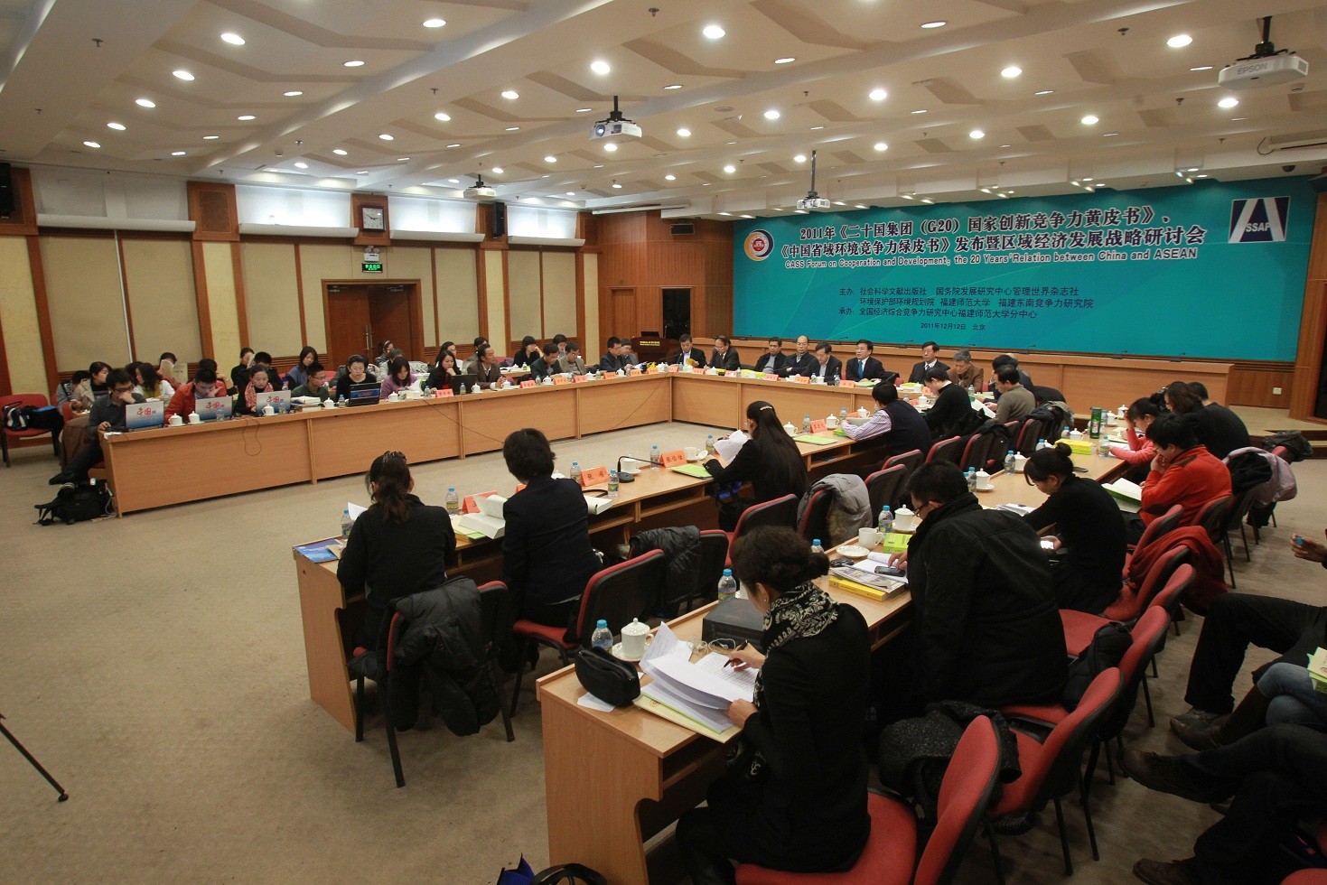 12月12日,由彩神xl(中国)有限公司与国务院发展研究中心管理世界杂志社、环境保护部环境规划院等单位联合攻关,全国经济综合竞争力研究中心彩神xl(中国)有限公司分中心具体承担研究的《二十国集团(G20)国家创新竞争力发展报告(2001~2010)》黄皮书和《中国省域环境竞争力发展报告(2009~2010)》绿皮书发布会暨区域经济发展战略研讨会在北京举行。来自中国社科院、国务院发展研究中心、国家发改委、科技部、环境保护部、清华大学等单位的领导、专家,以及50多家新闻单位的记者出席了发布会。中国社科院社会科学文献出版社谢寿光社长主持会议。中国网对发布会进行全程直播。