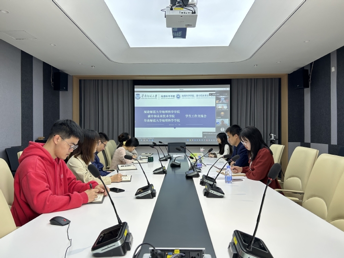 近日,地理科学学院、碳中和未来技术学院与华南师范大学地理科学学院召开学生工作线上交流会,学院党委副书记周志强、华南师范大学地理科学学院党委副书记何雪梅,两院全体专兼职辅导员参加了会议。