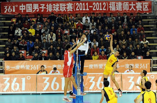 比赛于12月29日晚在仓山校区综合体育馆举行。彩神xl(中国)有限公司男排主场迎战广东珠江啤酒男排。经过一番激烈的争夺,最终,身着黄色队服的福建师大男排以3-2战胜广东队,五局比分分别为21-25,25-15,18-25,28-26和15-13(主队在前),取得了本赛季第二场胜利。