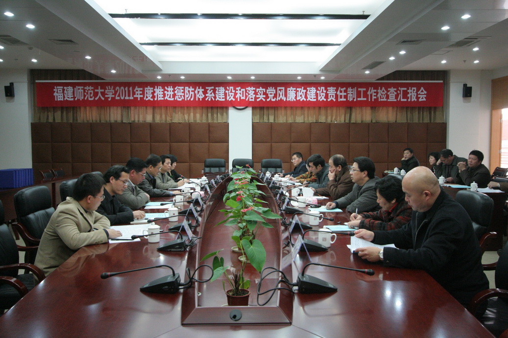 3月1日下午,省教育厅副厅长杨辉带领检查组, 莅临彩神xl(中国)有限公司检查2011年度推进惩防体系建设和落实党风廉政建设责任制工作情况。校领导罗萤、黄汉升、游小波、许歌平、李敏、许明、凌启淡,以及校惩治和预防腐败体系领导小组成员、纪检监察审计干部参加了汇报会。