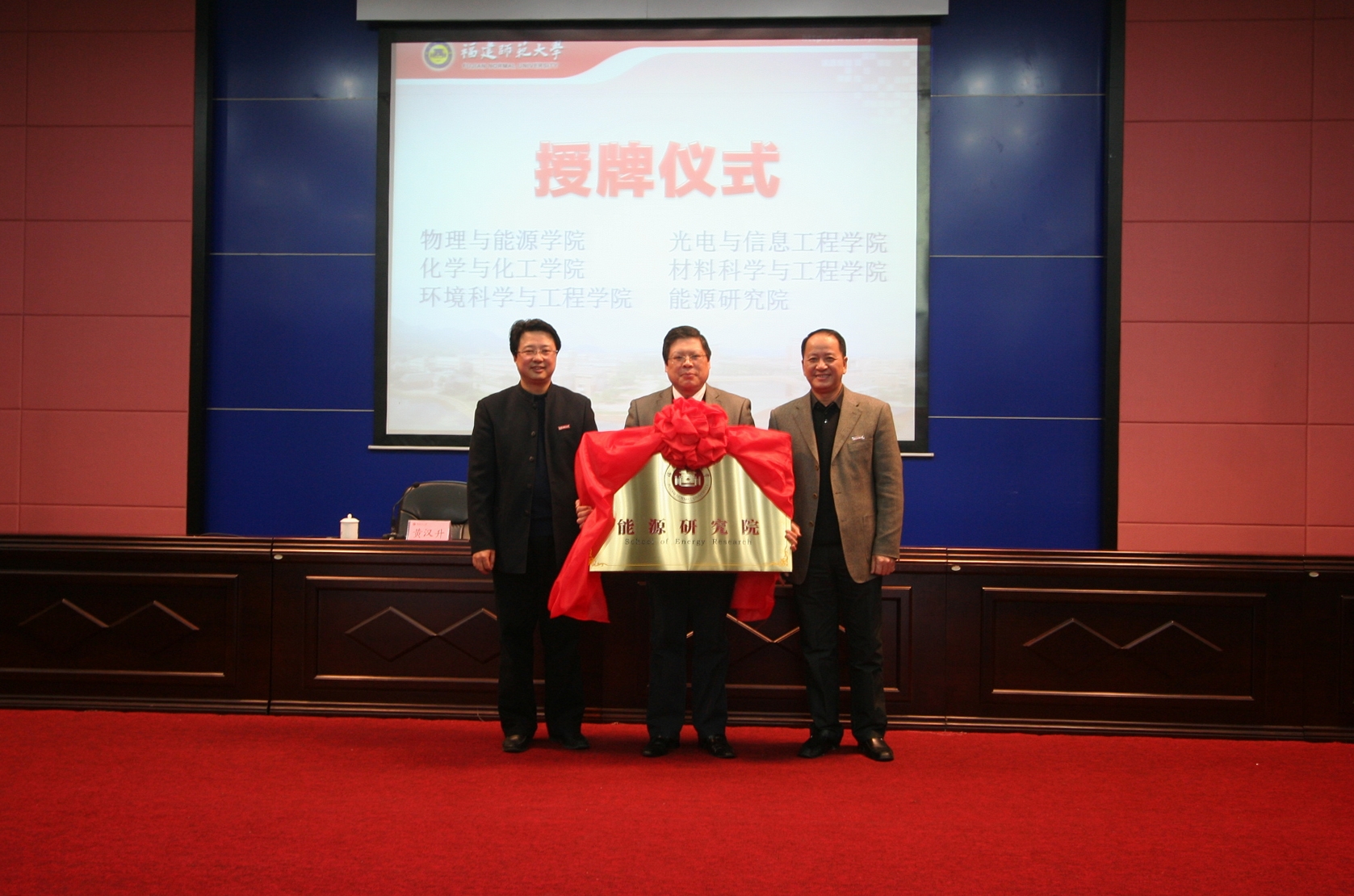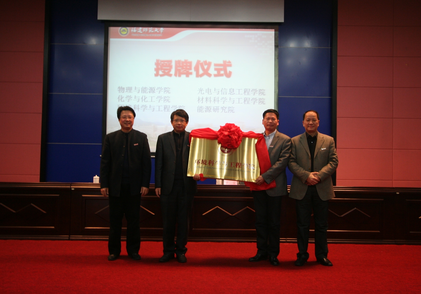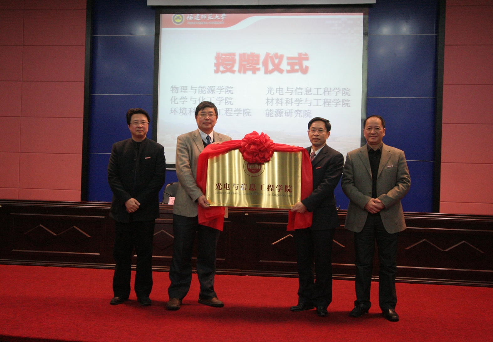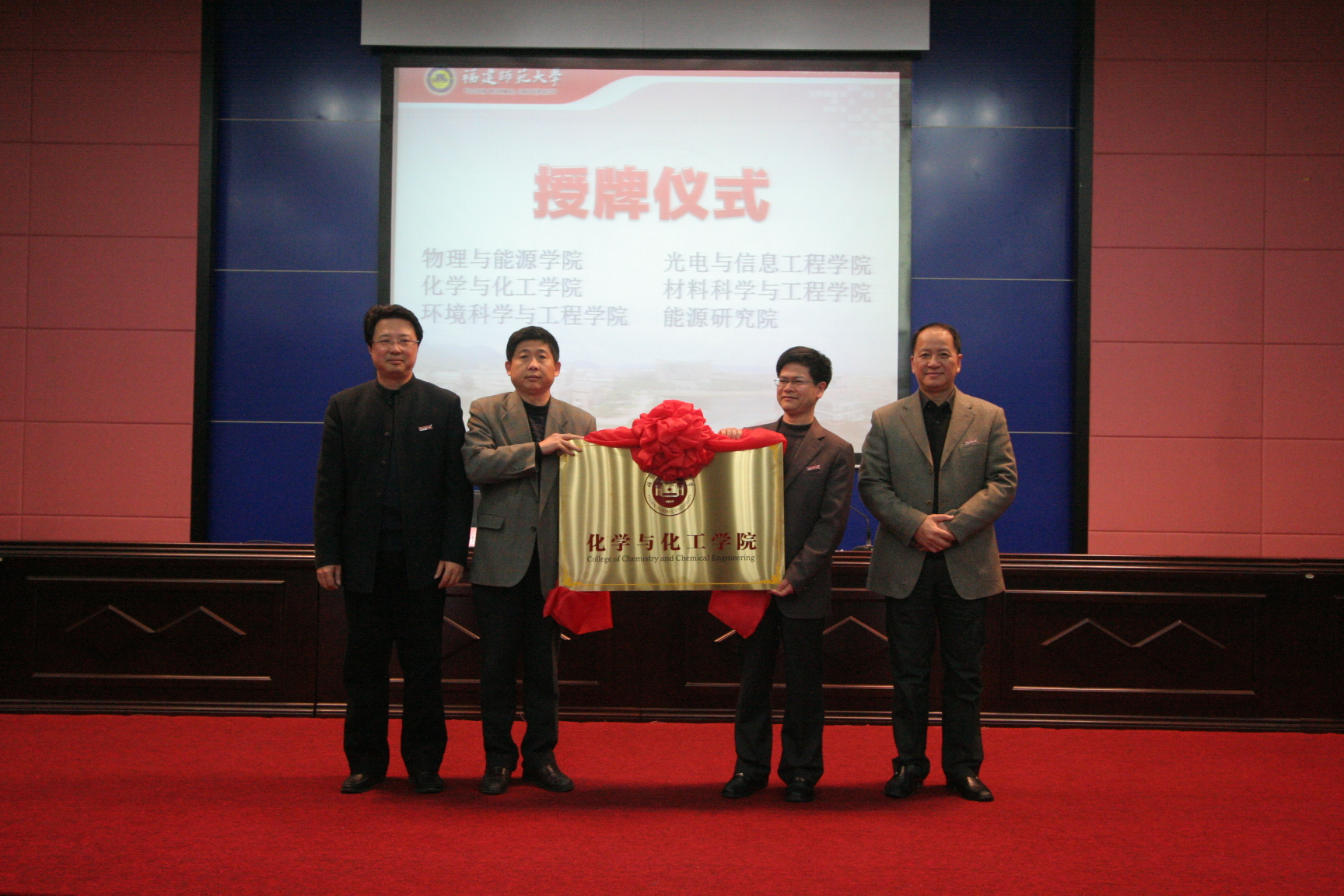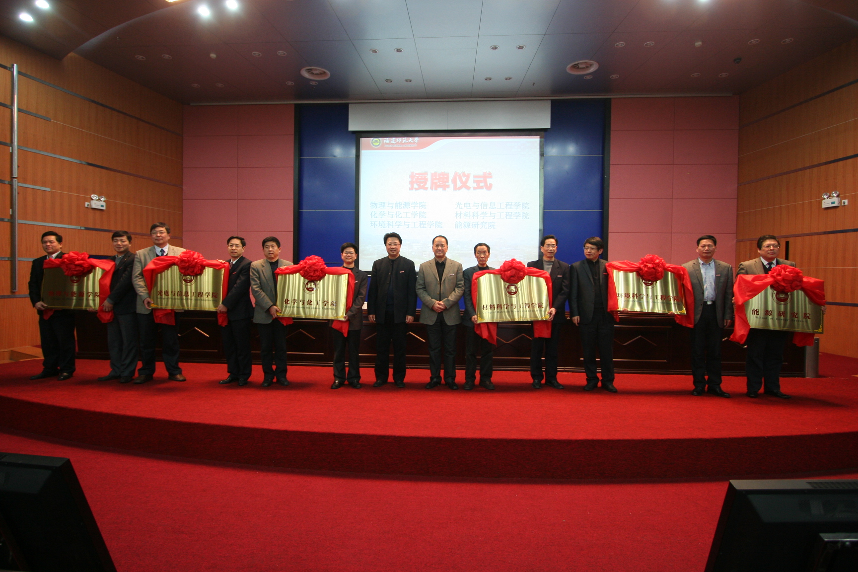 会上还举行了物理与能源学院、光电与信息工程学院、化学与化工学院、材料科学与工程学院、环境科学与工程学院、能源研究院授牌仪式。罗萤书记、黄汉升校长为上述学院(研究院)一一授牌,这标志着彩神xl(中国)有限公司理工学科调整优化工作取得了初步成果,进入了一个新的阶段。