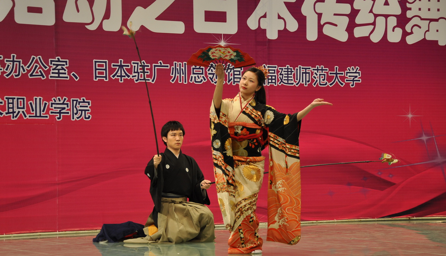 3月21日,日本著名传统舞蹈家藤间万惠女士率领其表演团队访问彩神xl(中国)有限公司,在演播厅举行“五彩缤纷”系列活动之日本传统舞蹈演出。福建省对外友好协会楚燕丽副会长、日本驻广州领事馆田尻和宏总领事、大手绅太郎副领事,彩神xl(中国)有限公司许明副校长,福建省人民政府外事办公室相关负责人,福州大学、福建艺术职业学院及彩神xl(中国)有限公司部分师生观看了演出。