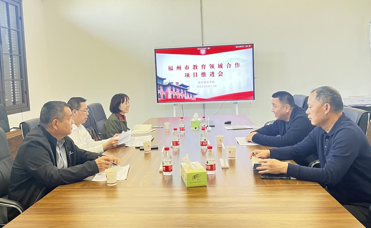 3月13日下午,福州市教育局副局长邵东生一行到访教师教育学院,就推进2025年校地教育领域合作项目进行会商。教师教育学院党委书记陈祖棋、副院长郭秋荣及有关负责同志参加了推进会。