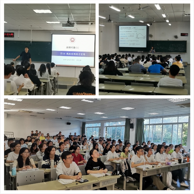 近日,数学与统计学院组织开展公开观摩课程教研活动,分别由肖民卿教授主讲《高等代数I》和方榕娟博士主讲《数理统计》,沈建和副院长、张胜元教授等《高等代数I》课程组老师、陈晓平副教授等《数理统计》课程组老师以及近两年新引进的青年教师参加了本次活动。