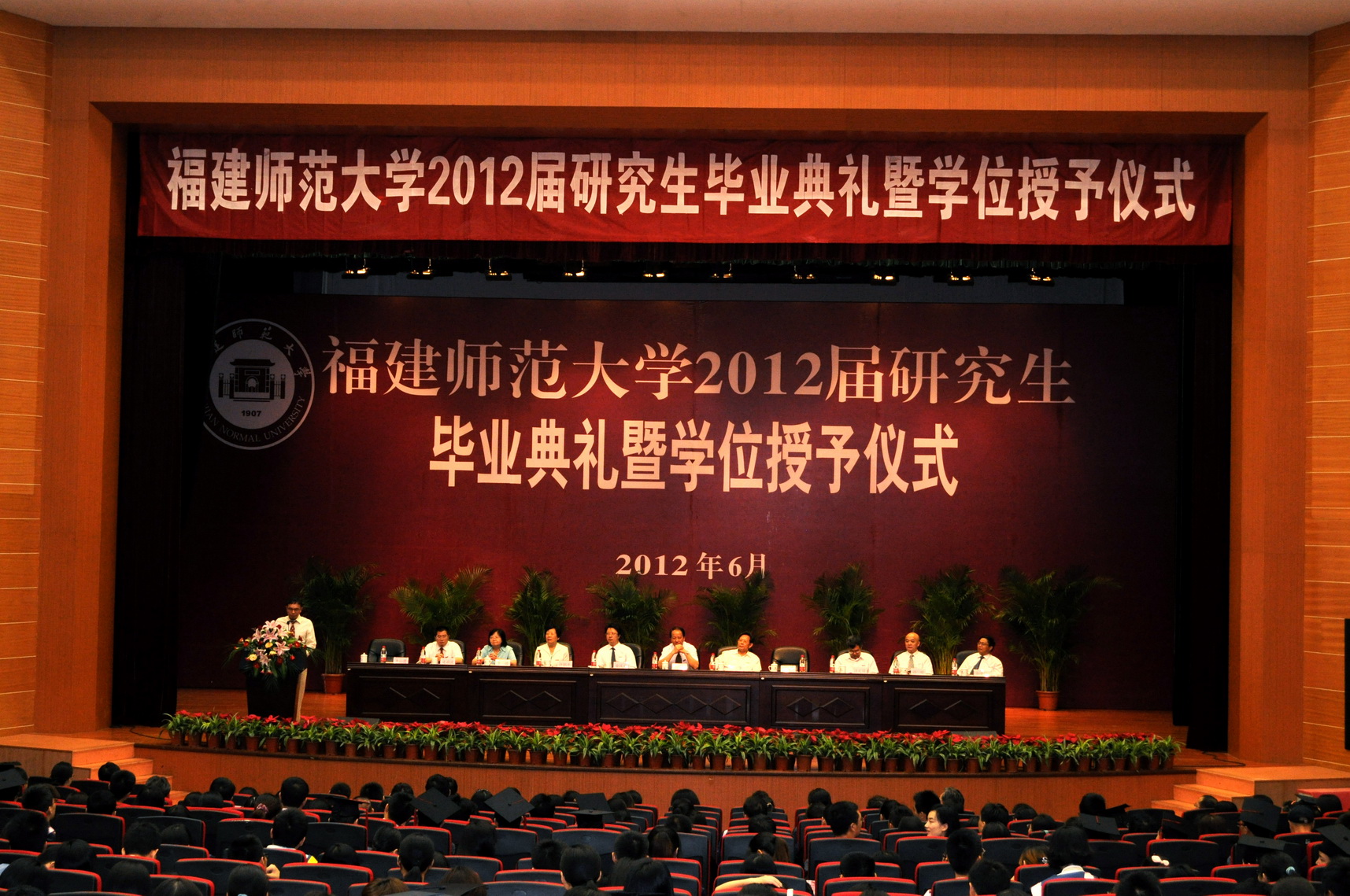 黄校长向2012届研究生提出三点希望:一是做勤学善思的践行者。希望大家怀揣追求真理的信念,多读书、读好书,多思考,多研究,在平凡的工作岗位上做出不平凡的业绩。二是做行胜于言的推动者。希望大家发扬历代师大人的优良传统,珍惜美好青春年华,脚踏实地,奋力拼搏,以实际行动谱写辉煌的人生篇章。三是做理想之路的先行者。希望大家坚守自己的理想,树立新的目标,拉高自己的标杆,自强不息,永不自满,努力走在时代的前列,成为国家的栋梁,社会的中坚。
