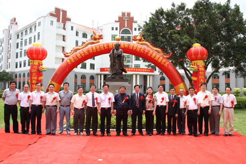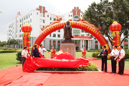 6月26日上午,闽南科技学院举行孔子圣像揭幕仪式。圣像捐赠人、香港孔教学院院长、国际儒学联合会副理事长汤恩佳博士,香港孔教学院副院长、香港汤恩佳孔子思想宣讲团永久荣誉团长、香港孔教总会永远名誉会长吕天增先生,香港汤恩佳孔子思想宣讲团团长、复旦大学博士杨发坤先生,彩神xl(中国)有限公司校长助理郭警修,南安市副市长李清安,泉州府文庙管理处主任何振良,福州市孔子学会常务副会长柯远扬教授,福州市孔子学会秘书长、孔子75代孙孔海钦先生,学院董事会戴宏达董事长、戴宽南副董事长,学院领导郭丹、林明旭,学院有关部门负责同志、师生代表,以及福州市孔子学会理事、部分会员等参加了揭幕仪式。