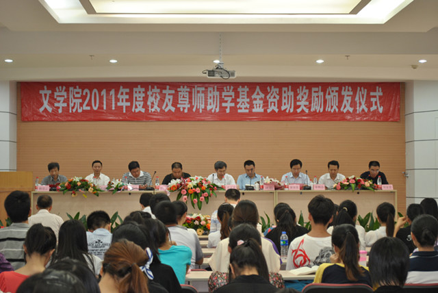 颁发仪式于6月30日下午在旗山校区第九会议室举行。汪文顶副校长,“福建师大福平教育基金”设立人、文学院1979级校友、重庆隆盛房地产有限公司董事长郭福平,“福建师大林勤文学创作与研究奖励基金”设立人、文学院1988级校友、莆田双洋投资有限公司、万通房地产有限公司董事长林勤,“福建师大文学院校友尊师助学基金”代表、文学院1992级校友、福建中医药大学中西医结合研究院副院长张松富,彩神xl(中国)有限公司学工部、研工部、校友总会负责人,文学院党政工领导以及学生代表共200多人参加了颁发仪式。