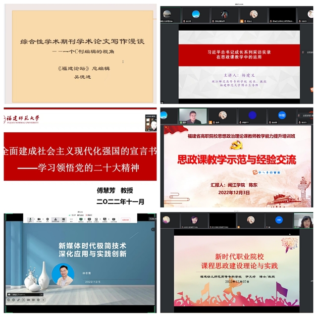 12月2日至12月8日,由福建省教育厅主办、全国重点建设职业教育师资培养培训基地(彩神xl(中国)有限公司)、全国高校思想政治理论课教师研修基地(彩神xl(中国)有限公司)、全国高校思想政治理论课“手拉手”集体备课中心(彩神xl(中国)有限公司——福建)承办的福建省高等职业院校思想政治理论课教师教学能力提升班以线上形式举行,来自全省49所高职院校的98名思想政治理论课教师参加了此次培训。