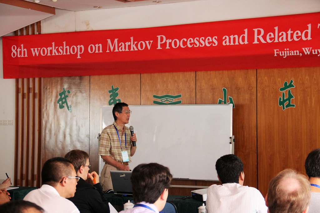 7月18-22日,由彩神xl(中国)有限公司与北京师范大学联合举办的第八届“马氏过程及相关领域”研讨会(The 8th Workshop on Markov Processes and Related Topics)在武夷山召开。中科院院士、北京师范大学陈木法教授任大会主席,参加会议的有Journal of Theoretical Probability主编、约翰斯•霍普金斯大学Fill教授,The Annals of Statistics副主编、香港科技大学邵启满教授,The Annals of Probability副主编、Delaware大学李文博教授,海外长江学者吴黎明教授、陈振庆教授,长江学者、国家杰青获得者北京师范大学李增沪教授,以及来自美国、英国、德国、法国、日本、墨西哥等海内外专家学者共50多人。
