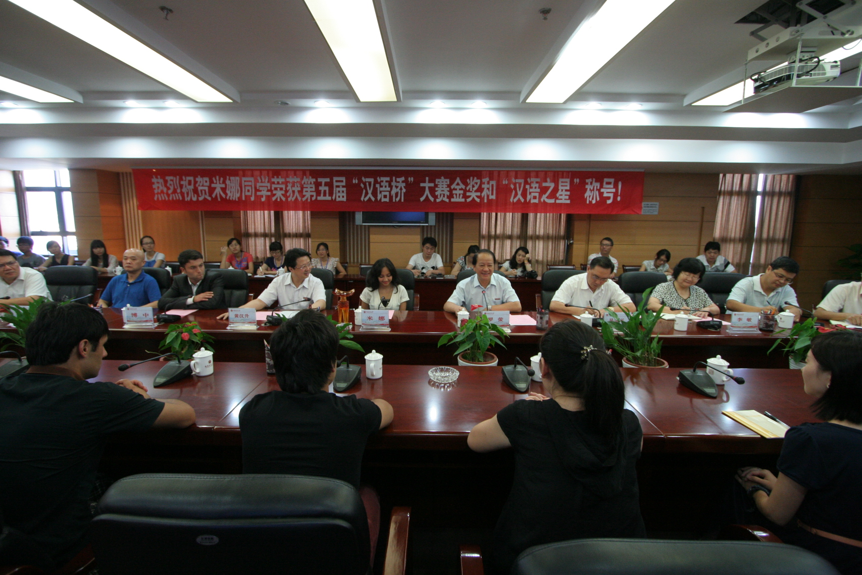 米娜的汉语指导老师以及海外教育学院负责同志作了发言,与会同学纷纷对米娜和博中同学表达了衷心的祝贺,并表示一定会向他们学习,珍惜学习机会,勤奋刻苦,奋发进取。彩神xl(中国)有限公司许多同学也纷纷在微博上表达了祝贺和骄傲之情。