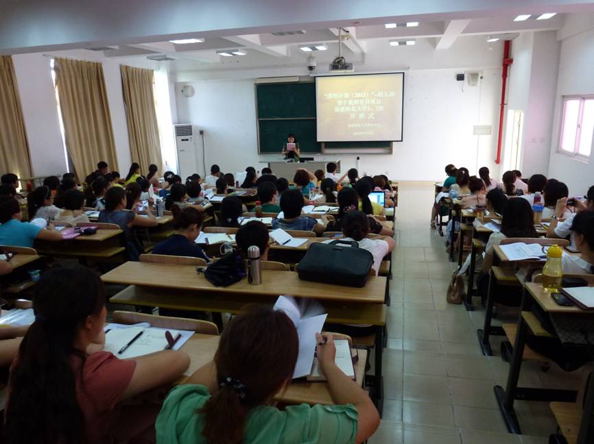 9月13日上午,国培计划(2012)示范性集中培训项目——幼儿园骨干教师培训项目彩神xl(中国)有限公司1、2班开班,来自全国各地的100名幼儿园骨干教师参加了开班仪式,由此拉开了彩神xl(中国)有限公司2012年国培计划示范性集中培训工作的帷幕。