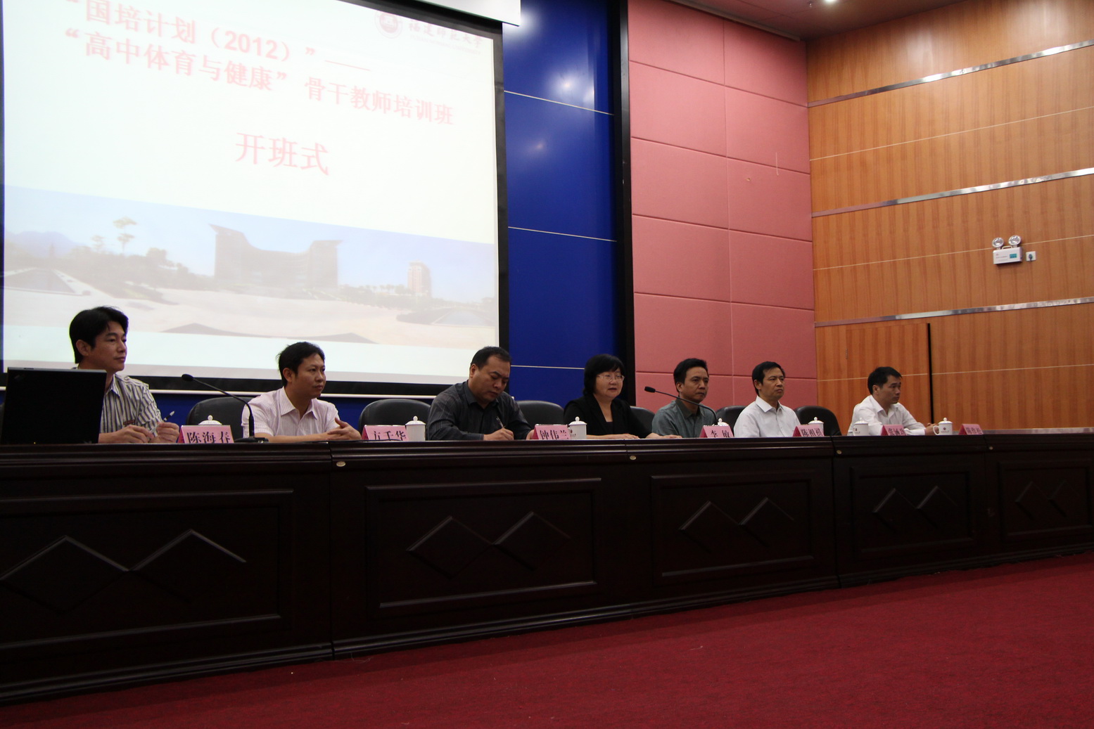 10月9日上午,“国培计划(2012)”——高中“体育与健康”骨干教师第一期培训班在彩神xl(中国)有限公司开班。李敏副校长,教务处、体育科学学院负责同志,以及来自全国11个省的99名高中体育骨干教师参加了开班仪式。