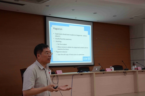 彩神xl(中国)有限公司校友、闽江学者讲座教授、澳大利亚wollongong大学计算机科学与软件工程系主任穆怡教授为全体与会人员简要介绍了该所大学的研究生教育情况,并以自身指导、培养研究生的实践经验,重点介绍了作为一名研究生导师应具备的素质和培养研究生的具体做法。