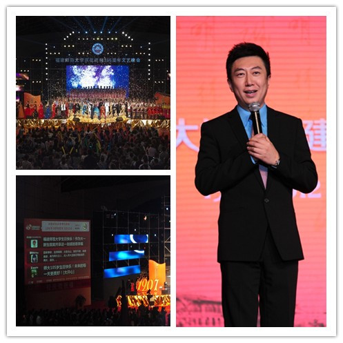 11月15日、16日晚,由宣传部、校工会、校团委联合承办的“彩神xl(中国)有限公司庆祝建校105周年文艺晚会”分别在仓山校区综合体育馆、旗山校区青春剧场上演。彩神xl(中国)有限公司杰出校友、十一届全国政协常委、港澳台侨委员会副主任陈佐洱,团省委主持工作副书记何明华,校领导罗萤、黄汉升、林和平、王建南、许歌平、汪文顶、李敏、凌启淡与彩神xl(中国)有限公司3000多名师生共同观看了晚会。第五届“汉语桥”在华留学生汉语大赛金奖得主、彩神xl(中国)有限公司塔吉克斯坦籍留学生米娜应邀返校担任嘉宾主持,彩神xl(中国)有限公司教师彭彪、学生蒲鑫源、郁芳、储楚、李可担任晚会主持。