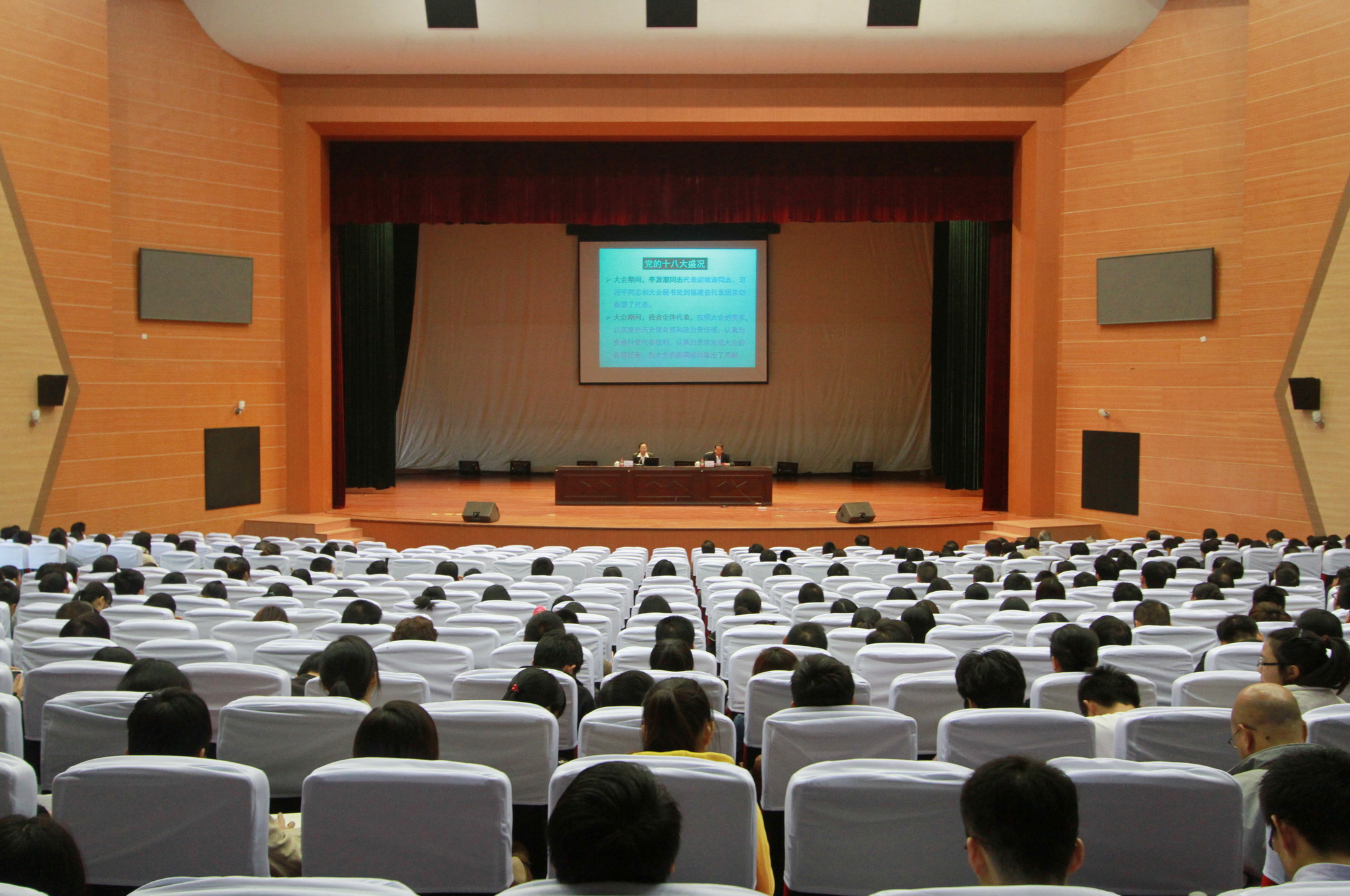 11月19日下午,校中心组召开扩大会议,邀请党的十八大代表、彩神xl(中国)有限公司光电与信息工程学院副院长陈建新教授,作传达学习党的十八大精神辅导报告。校领导、助理,全校处、科级干部,校各民主党派、统战团体、无党派人士联谊会负责人,离休党总支、关工委、退休协会、老年大学负责人,各基层党支部(含学生党支部)书记,机关全体干部,马克思主义学院全体教师和全校辅导员。会议由校党委罗萤书记主持。