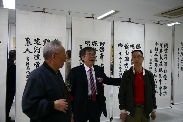 书法展于11月17日下午在仓山校区举行。副校长汪文顶,福建省文化厅原厅长李联明,书法家、福建省文史馆资深馆员赵玉林先生,中华诗词学会顾问、福建省社科院蔡厚示研究员,书法家、福建省文史馆副馆长余险峰,书法家、福建省书法家协会副会长蒋平畴,福建省诗词学会会长欧孟秋、副会长张奕专、陈永、黄高宪、常务理事周书荣,福建日报报业集团办公室主任陈德福以及文学院负责人和师生代表参加了开幕式。