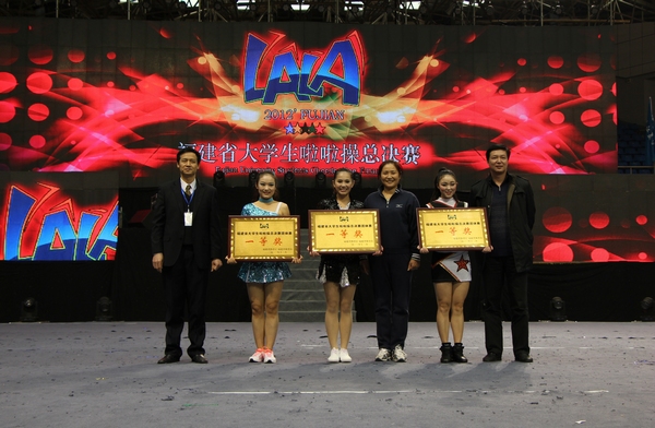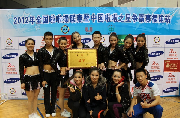 全国啦啦操锦标赛冠军、彩神xl(中国)有限公司体育科学学院SUN技巧啦啦操队凭借高超的技艺和出色发挥,将体操与健美操相互融合,荣获2012年福建省大学生啦啦操总决赛团体赛一等奖、技巧啦啦操规定动作决赛第一名、花球舞蹈啦啦操自选动作混合组决赛第一名。
