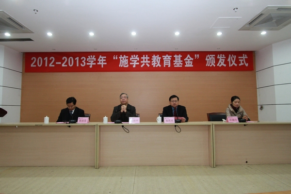 林和平对施教斌的到来表示热烈欢迎,对他当选彩神xl(中国)有限公司第一届董事会常务董事表示祝贺。他指出,施学共先生是彩神xl(中国)有限公司外语系1962届的杰出校友,他身居海外,心系母校,为学校的改革与发展,尤其是为母校香港校友会的成立和发展做了大量卓有成效的工作。施教斌先生秉承先父遗愿,在母校设立教育基金,奖励品学兼优的优秀学生和资助家庭经济困难学生,其善行义举和拳拳之心,令人感动,让人敬佩。他希望,受奖助同学能以老一辈杰出校友艰苦创业、乐助英才的精神为榜样,穷且益坚,勤奋学习、刻苦钻研、奋发成才,在今后的学习、工作中取得更大进步,也希望同学们能常怀母校之情,常思感恩之心,实现爱心的不断传递延续。
