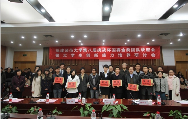 会上,李敏副校长宣读了学校表彰决定。校领导黄汉升、林和平、李敏为获奖团队颁发奖金并合影留念。国赛金奖团队进行了获奖项目的现场展示,重现国赛决赛现场答辩的精彩,让与会人员更直观地了解“挑战杯”大学生创业计划赛事的相关情况。