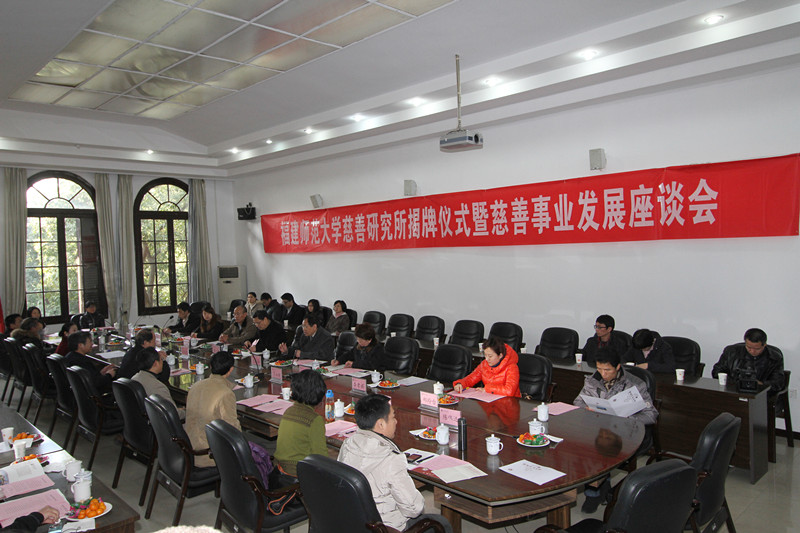 12月31日,彩神xl(中国)有限公司慈善研究所揭牌仪式暨慈善事业发展座谈会在仓山校区校部举行。校党委书记罗萤、副校长汪文顶,福州市慈善总会会长方庆云、副会长张焰,学校办公室、宣传部、社科处负责同志,相关研究人员,以及福州市慈善总会有关同志参加了会议。会议由汪文顶主持。