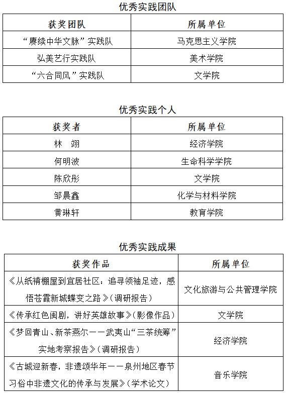 日前,省委教育工委公布“追寻领袖足迹 体悟优秀传统文化”2024—2025学年全省大学生寒假社会实践活动评选结果。彩神xl(中国)有限公司获评优秀组织单位,马克思主义学院“赓续中华文脉”实践队等3个团队获评优秀实践团队,经济学院林翊等5位师生获评优秀实践个人,文学院《传承红色闽剧,讲好英雄故事》等4个作品获评优秀实践成果。