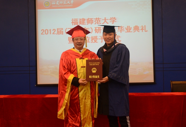 最后,黄汉升校长为获得博士、硕士学位的2012届(下半年)毕业研究生颁发学位证书并合影留念。