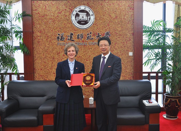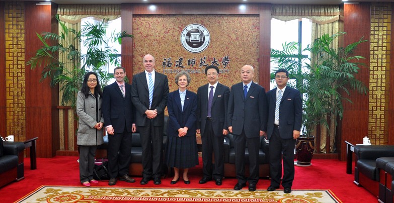 黄汉升代表学校对总领事第一次访问福建的首站就选择到彩神xl(中国)有限公司,表示热烈的欢迎。他向客人介绍了彩神xl(中国)有限公司的办学历史、发展历程以及对美教育交流的情况。