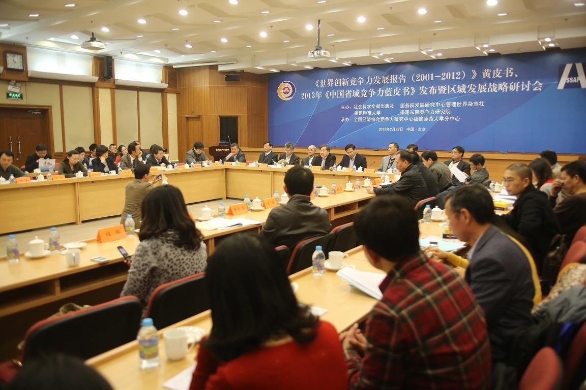 李慎明研究员、韩俊研究员分别代表中国社科院和国务院发展研究中心对首部《世界创新竞争力黄皮书》和第七部《中国省域竞争力蓝皮书》的出版表示热烈祝贺,高度评价了这两部书将为政府制定和完善科技发展政策、全面加快我国省域经济发展提供的借鉴和参考价值;赵新力研究员、李闽榕教授分别代表课题组就黄皮书、蓝皮书的研究进展和评价结果作了主题报告。李平、陈栋生、肖金成等10多位专家也分别对黄皮书、蓝皮书的出版表示热烈祝贺,并发表了主题演讲。