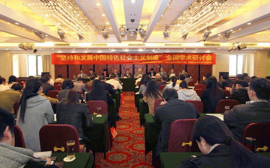 与会专家学者围绕中国特色社会主义制度的奠基、形成与发展,中国特色社会主义基本经济制度、基本政治制度、根本政治制度、生态文明制度,以及“五位一体”的建设中国特色社会主义总体布局等重大问题进行深入的探讨。