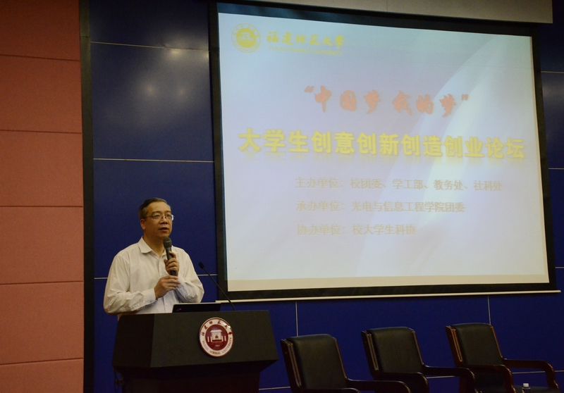 5月15日下午,由校团委、学工部、教务处、社科处主办,光电与信息工程学院团委承办,校大学生科协协办的“中国梦 我的梦”大学生创意创新创造创业论坛在旗山校区学术大讲堂举行。校党委副书记林和平,校团委、学工部、教务处、社科处、光电与信息工程学院负责人,各学院团委书记和学生代表近500人参加了论坛。